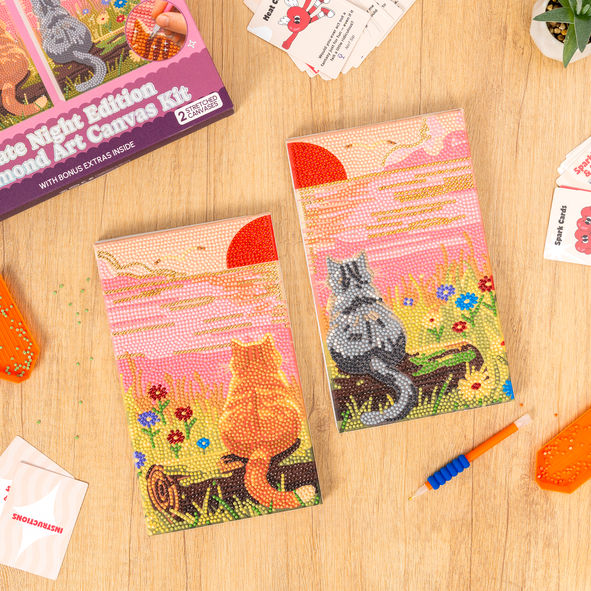 PixelPop 'Sunset for Two' Date Night Kit is the ultimate all-in-one Diamond Art kit designed to make bedazzling easy and fun. This kit includes everything needed to create a sparkling masterpiece, no experience required. Simply open the box, start bedazzling, and let the fun take over!