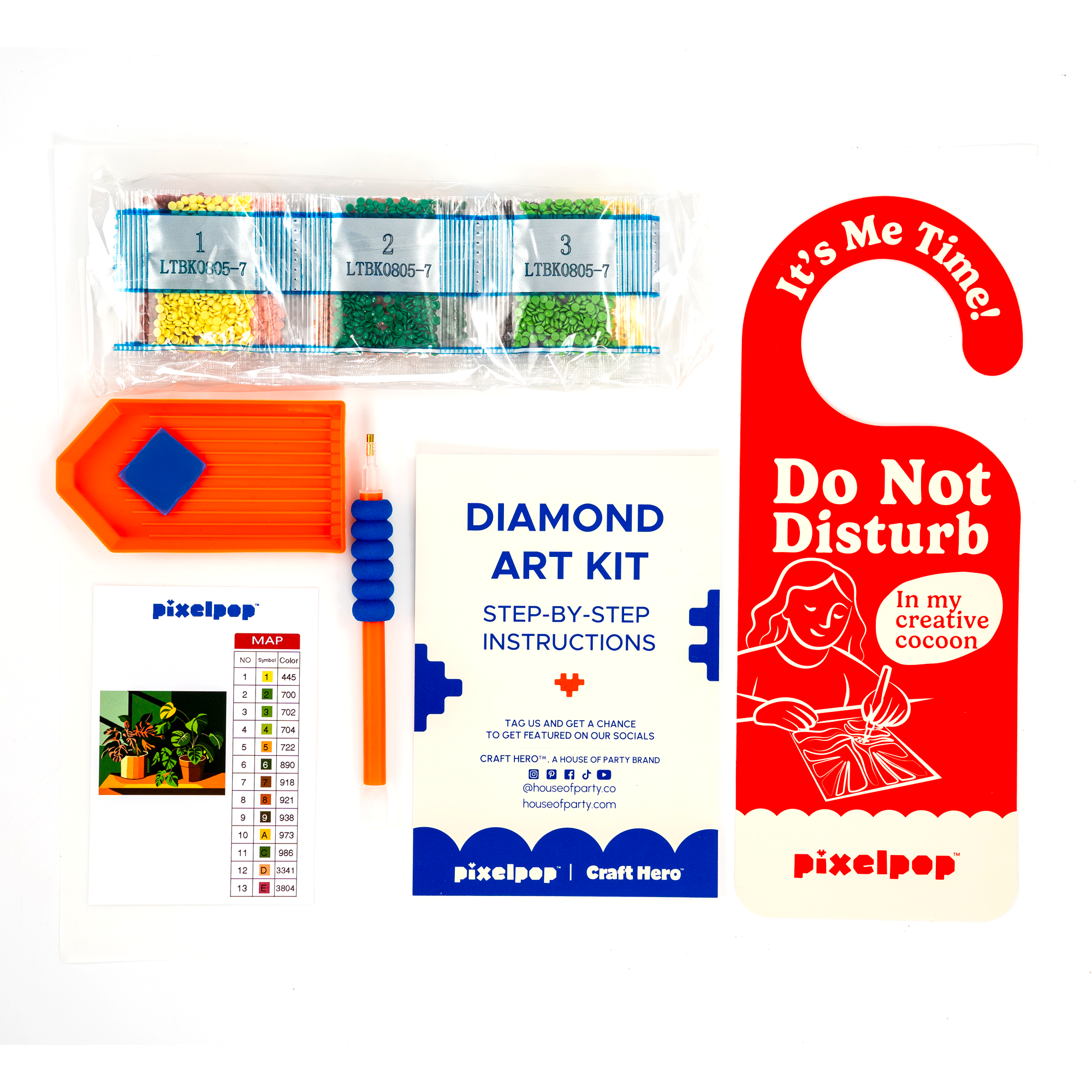 PixelPop 'Pink Palms' Reset Kit is the ultimate all-in-one Diamond Art kit designed to make bedazzling easy and fun. This kit includes everything needed to create a sparkling masterpiece, no experience required. Simply open the box, start bedazzling, and feel the tropical breeze!