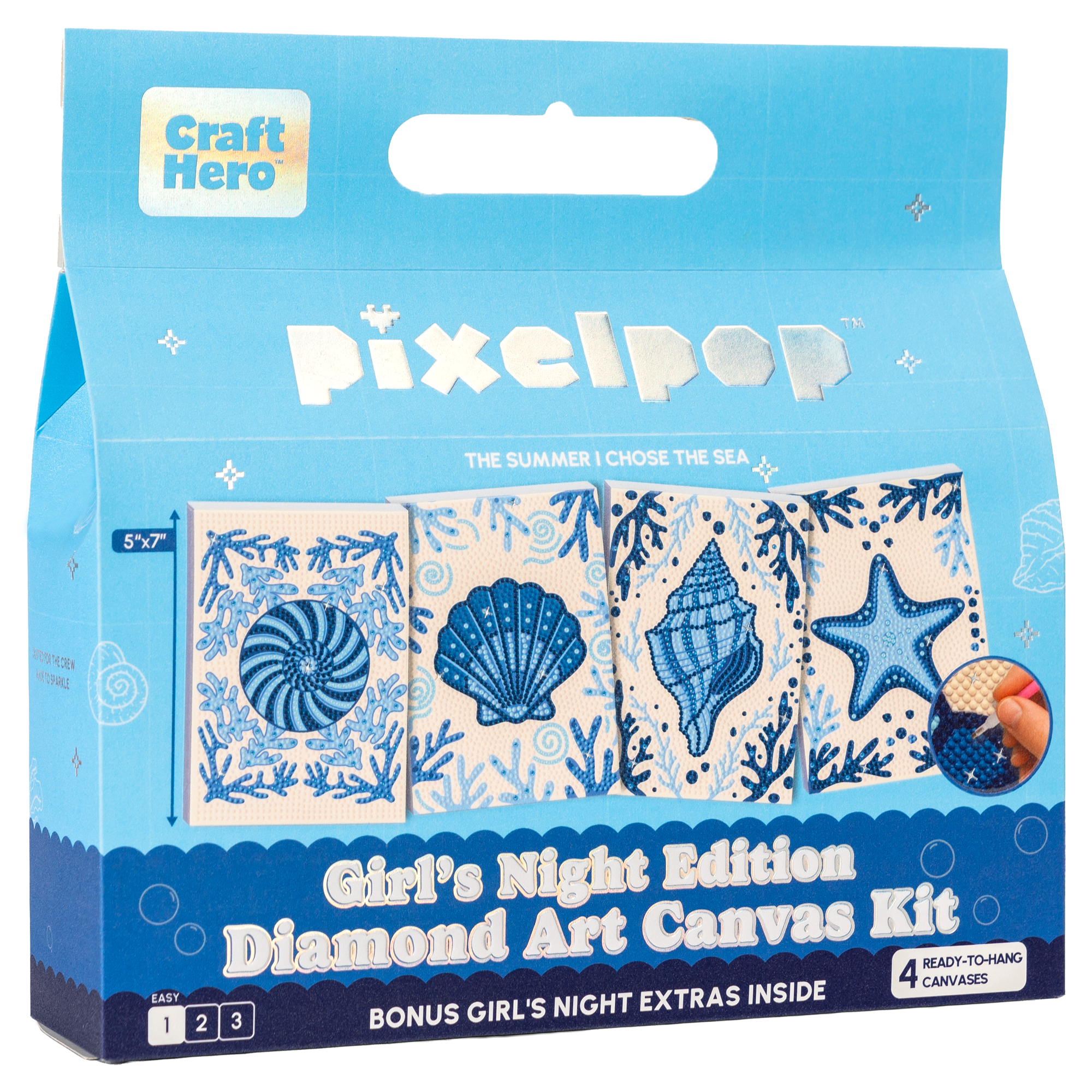 PixelPop  Girls Night Kit is the ultimate all-in-one Diamond Art kit designed to make bedazzling easy and fun. This kit includes everything needed to create a sparkling masterpiece, no experience required. Simply open the box, start bedazzling, and let the luck flow!