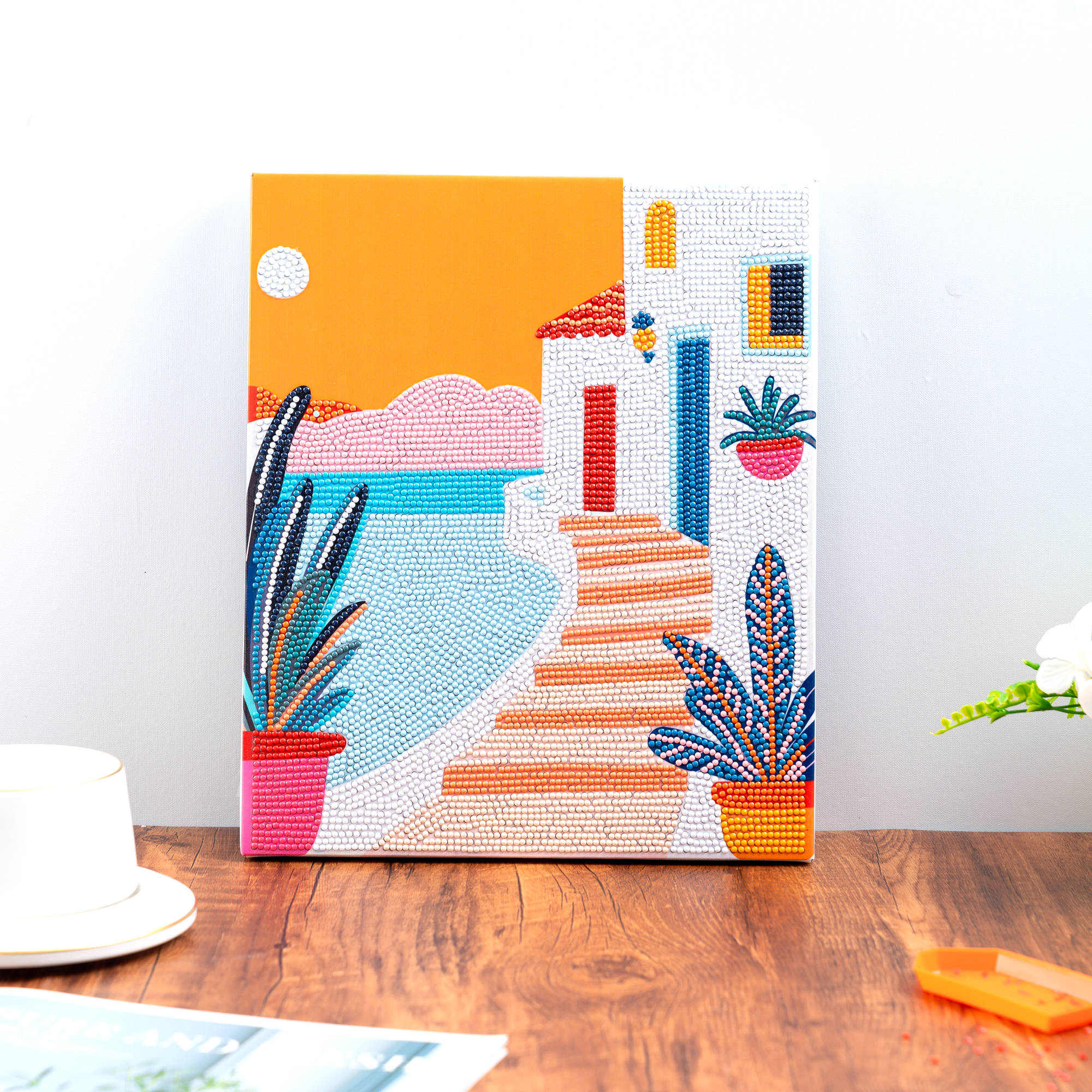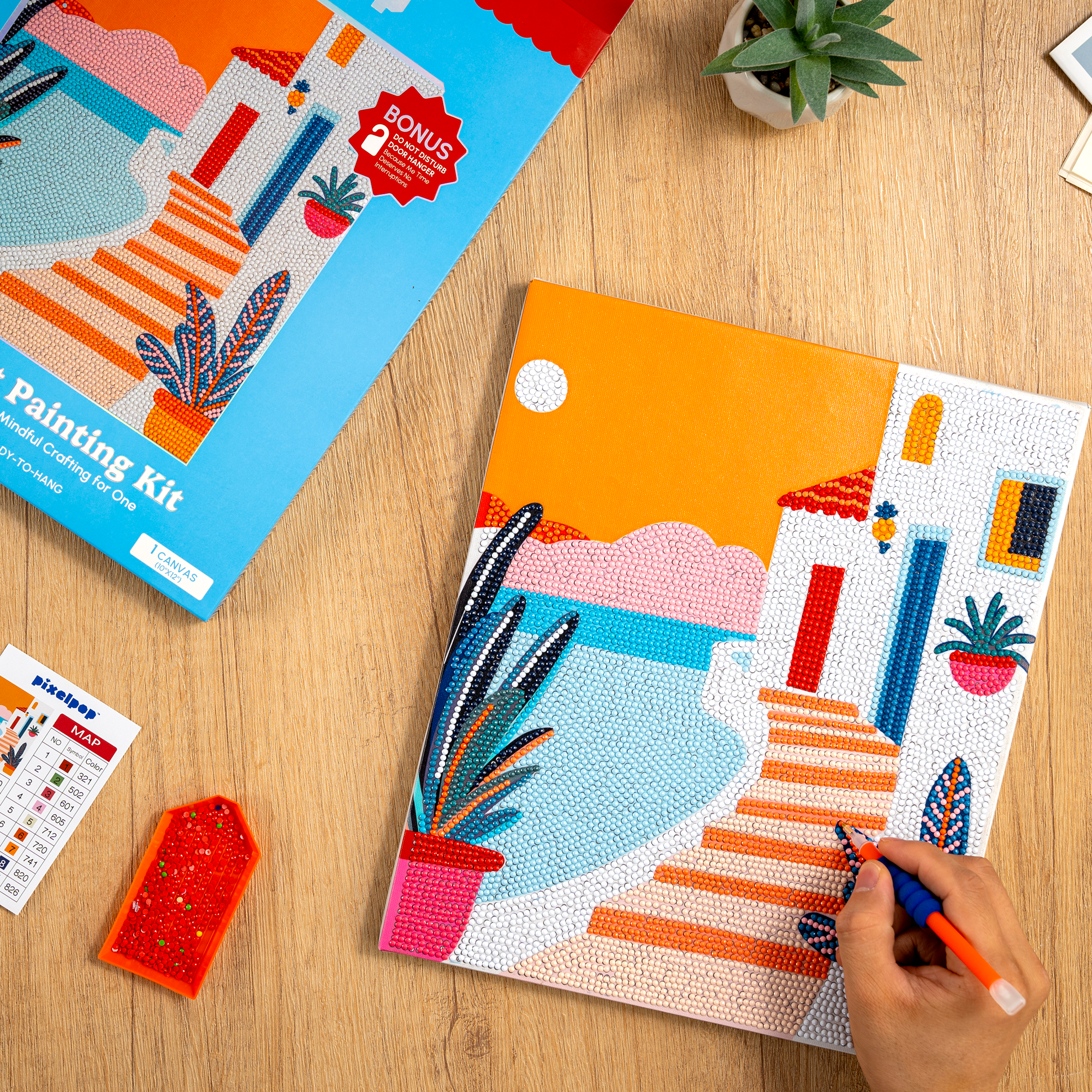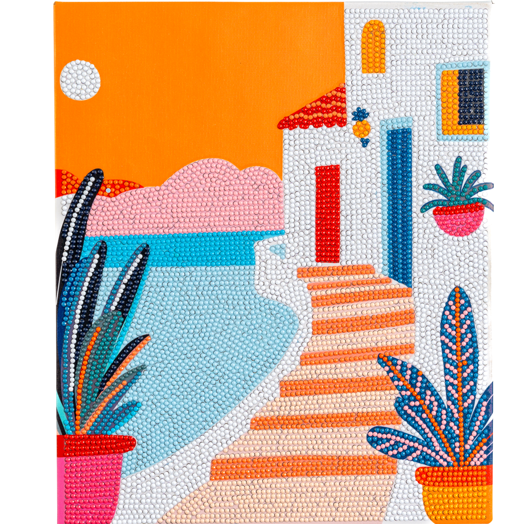 PixelPop 'Pink Palms' Reset Kit is the ultimate all-in-one Diamond Art kit designed to make bedazzling easy and fun. This kit includes everything needed to create a sparkling masterpiece, no experience required. Simply open the box, start bedazzling, and feel the tropical breeze!